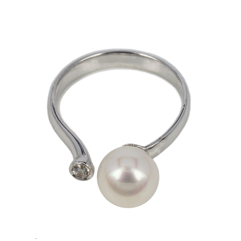 Sortija en oro blanco 750 mls, engastado con diamantes talla brillante de 0,07 quilates y perla.