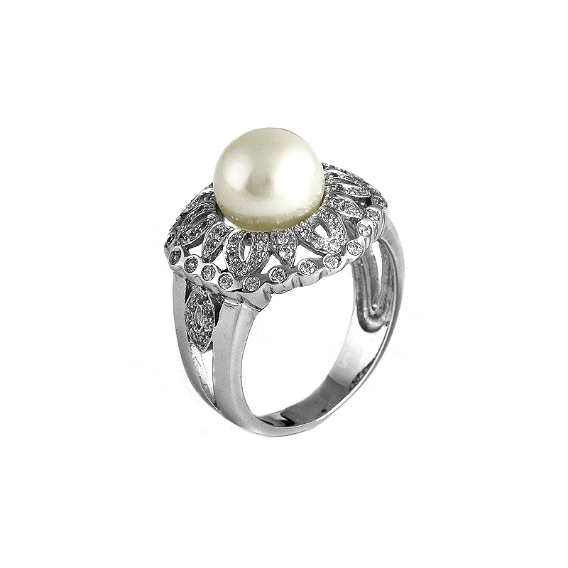 Sortija con diamantes y perla ( Rf 04999S-BR )