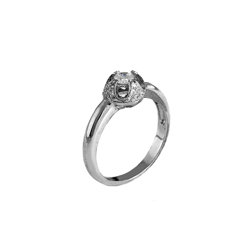 Sortija, oro blanco 750 mls, engastado con diamantes talla brillante de 0.32 quilates.
