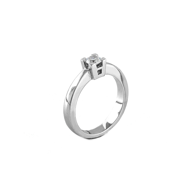 Solitario, oro blanco 750 mls, engastado con un diamante talla brillante de 0,36 quilates.